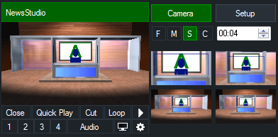 The Camera Tab provides thumbnail previews of the camera angles available within the Virtual Set.