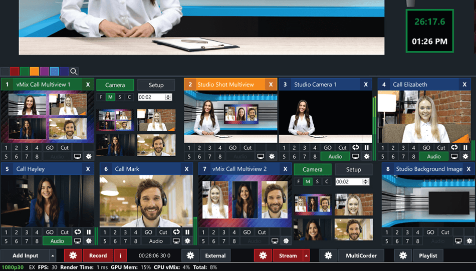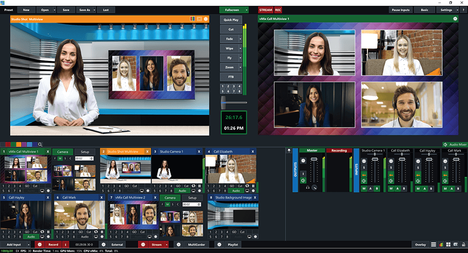 - Take advantage of all the advanced production features in vMix when setting up your call. vMix supports multiple overlay channels, virtual sets and templates which can be used to enhance your production and dazzle your viewers. Everything else you need for any live show is also included such as integrated streaming to your favourite providers, built in recording and so much more!